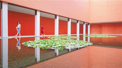 最能直观展现低碳建筑理念的,是即将投入使用的“数字展览馆”,该建筑隐藏在一片绿植之中,外墙大量采用红色的陶板砖,还配有一个下沉式的庭院。“我们利用陶板砖本身的构造工法,学习海南火山岩砌筑房屋的特点,构造了一套独特的遮阳体系。”栾虎子说,局部开放的室外、半室外区域均没有空调系统接入,只在局部封闭的室内区域采用了空调系统,减少了人工能源的耗费,“可比同类建筑减少30%—40%的碳排放。”