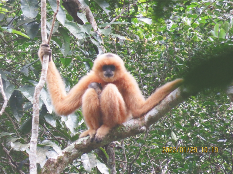 2020年,海南长臂猿监测与研究人员在霸王岭林区东崩岭监测点监测到海南长臂猿正形成第5个家族群(E群)。经过长达8个月的跟踪监测,最终发现这个新家庭诞下婴猿“平平”,释放出海南长臂猿拥有扩散到新栖息地能力的信号。