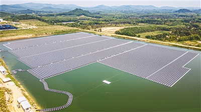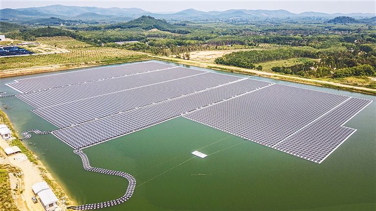 这是4月11日在泰国罗勇府拍摄的水上漂浮式光伏电站。