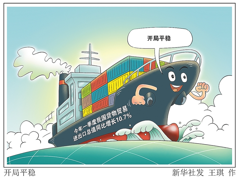 数据显示,一季度,我国出口5.23万亿元,增长13.4%;进口4.19万亿元,增长7.5%。
