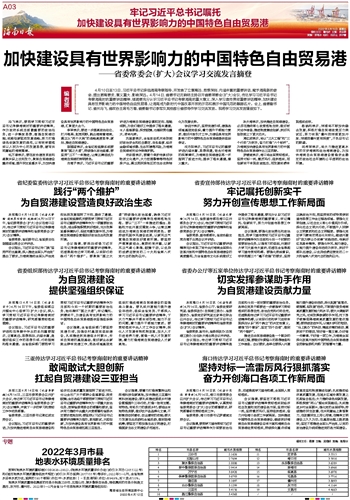 第002版:牢记习近平总书记嘱托加快建设具有世界影响力的中国特色自由贸易港