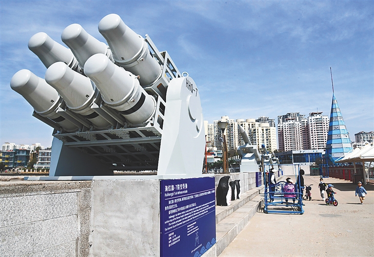 当日,一批海军退役装备入驻山东省青岛市中国水准零点景区。该景区除了海军退役555号导弹护卫舰,还拥有多型舰艇火炮、炮瞄雷达、反舰导弹实物和模型等,是集国家安全教育、国防知识科普、青少年研学于一体的爱国主义教育基地。新华社发