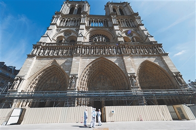 15日是法国巴黎圣母院遭大火烧损三周年纪念日。法国总统马克龙当天视察巴黎圣母院重建施工现场后表示,巴黎圣母院有望在2024年对游客重新开放。新华社/路透