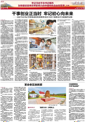 第002版:牢记习近平总书记嘱托加快建设具有世界影响力的中国特色自由贸易港