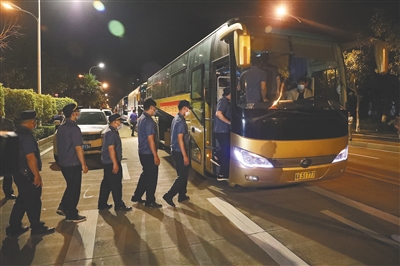 当晚10时许,在浓浓夜色中,随着一声声“支援三亚、抗疫必胜”的齐声呐喊,工作队队员登上大巴车,连夜向三亚驰援。