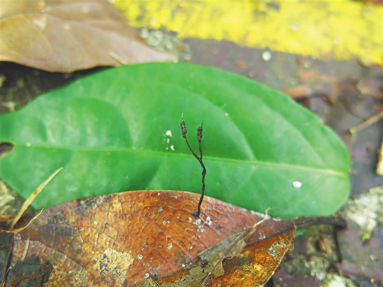 “我们差点错过了海南山胡椒叶生炭角菌。”马海霞回忆说,海南山胡椒叶生炭角菌最初被发现时是无性型状态,长得像头发丝一样,非常细小,也看不到它的孢子。没有有性阶段性状无法鉴定,就无法确定它是否为新物种,为此团队等待观察了好几个月,直到它成熟。