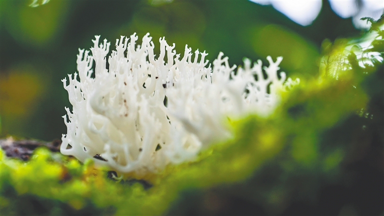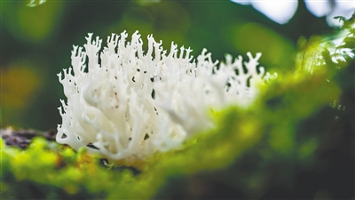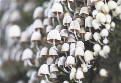 他们一脚深一脚浅地在雨林中行进着,时而翻过拦路的巨石,时而俯身低头摩挲。他们此行的目的,是探寻雨林中的小精灵——大型真菌。