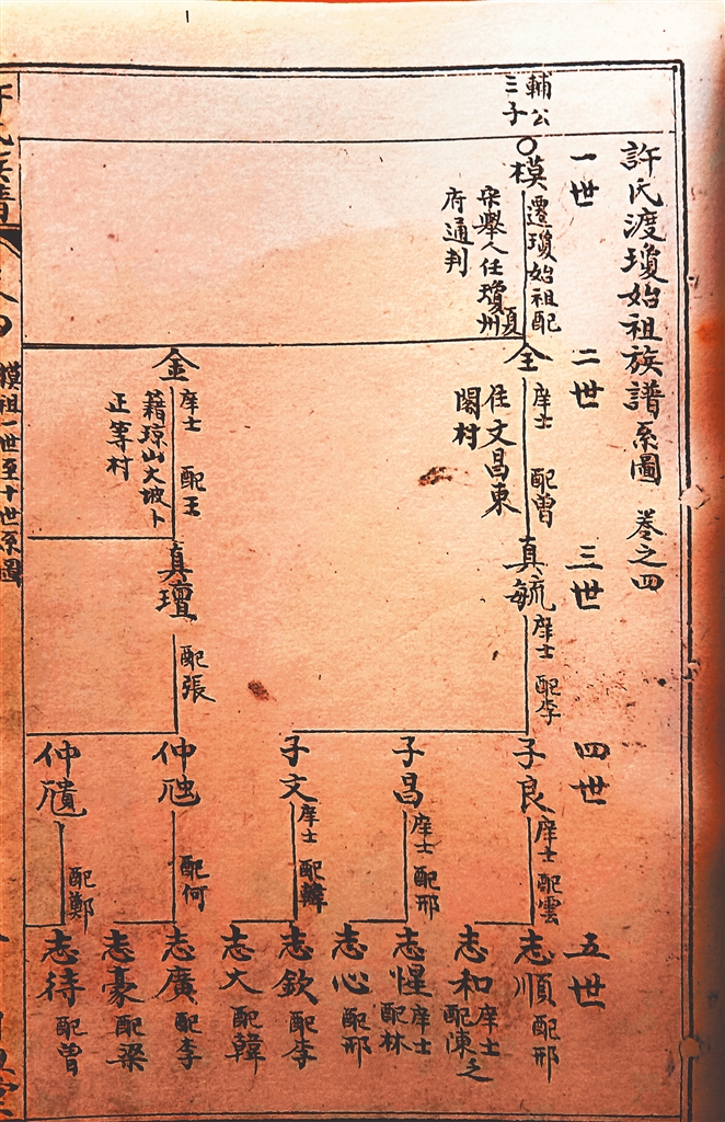 据万历《琼州府志》和《许氏族谱》记载,时间来到明代中后期,许氏八世中有位叫许益光的,天性谦让,孝敬长辈,友爱兄弟,将祖宗留给他的家业让给兄弟,捐妻子的梳妆镜匣帮侄女出嫁,在族中、乡里皆传为美谈。