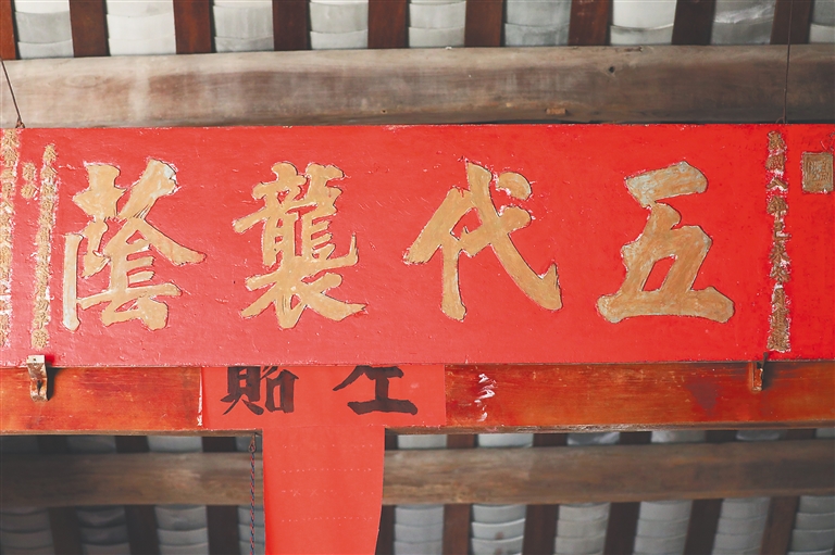 明代初年,许仲虺因平乱有功,于永乐三年(1405年)进京面见朱棣,被授官“土知县”,从他开始有五代人享受这一待遇。许氏宗祠里一块100余年前重刻的牌匾“五代袭荫”,背后承载的便是这一家族的这件历史大事。