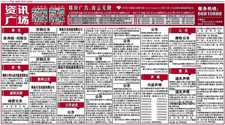 海南天悦拍卖有限公司拍卖公告