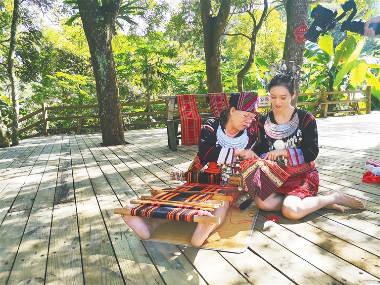 从小在五指山长大的陈孟丽,是一个地道的黎族姑娘。“黎锦非遗文化一直吸引着我,我特别羡慕那些黎锦织娘,因为她们传承了我们黎族的优秀文化。”陈孟丽说,黎族织娘能利用各种不同的纺织工具,织出色彩斑斓的锦、被、单、筒裙、花带等产品,让宝贵的文化遗产得以保留的同时,也让年轻一代的黎族青年感受到本民族的优秀传统文化。