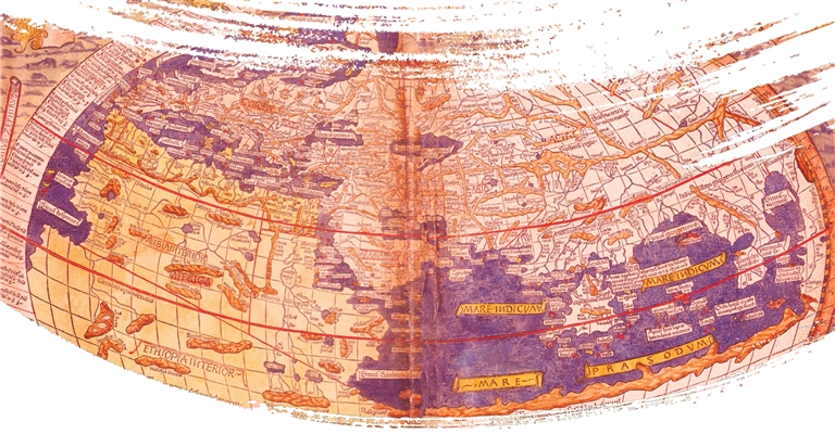 展览中所展示的托勒密著作《地理学指南》中的一幅世界地图,对15—16世纪的世界航海影响巨大。哥伦布便是受托勒密世界地图影响,认为西航能最快抵达东方,结果意外抵达美洲大陆。