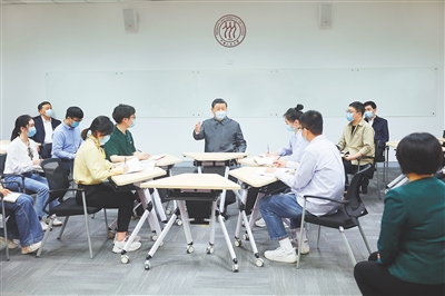 上午9时20分许,习近平在中国人民大学党委书记张东刚、校长刘伟陪同下,首先来到立德楼,观摩思政课智慧教室现场教学。习近平同青年学生一起就座,认真倾听并参与讨论,对学校立足自身优势,不断推进思政课教学改革创新,打造高精尖水平思政课的做法表示肯定。他强调,思想政治理论课能否在立德树人中发挥应有作用,关键看重视不重视、适应不适应、做得好不好。思政课的本质是讲道理,要注重方式方法,把道理讲深、讲透、讲活,老师要用心教,学生要用心悟,达到沟通心灵、启智润心、激扬斗志。青少年思想政治教育是一个接续的过程,要针对青少年成长的不同阶段,有针对性地开展思想政治教育。希望人民大学绵绵用力,久久为功,止于至善,为全国大中小学思政课教学提供更多“金课”。也鼓励各地高校积极开展与中小学思政课共建,共同推动大中小学思政课一体化建设。