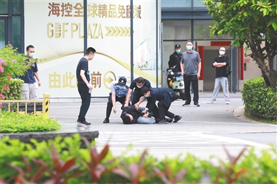 3月27日上午,海口110接报,在海口市龙华区一商业广场发生一起抢劫金店案件。案发后,海口特警、刑警、交警等多警种力量的应对处置专班,严格落实“三同步”要求,稳妥开展现场处置、案件侦办、舆情管控等工作,当场将犯罪嫌疑人抓获,快速成功地处置了该案件,无人员伤亡。从案发到案件处置、现场发布新闻,仅用3个小时。