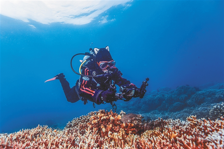“2016年,海南蜈支洲旅游开发股份有限公司与中国科学院南海海洋研究所合作开展珊瑚修复工作,经过多年修复,蜈支洲岛海域珊瑚覆盖率增长超一倍。”三亚蜈支洲岛旅游区海洋部经理王丰国说,美丽的珊瑚礁不仅为海洋生物的聚集、繁殖和生长提供了更广阔的栖息地,也吸引四面八方的游客纷至沓来。