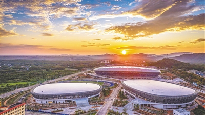 儋州市体育中心“一场两馆”是本届赛事的主场馆,省六运会开闭幕式将在这里举行。