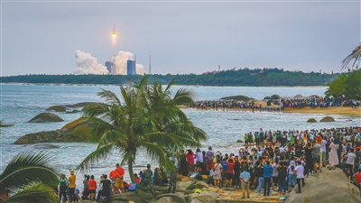 在铜鼓岭脚下的石头公园,在龙楼镇民居楼顶,在淇水湾海滩,每当有火箭发射任务,成千上万的航天爱好者就会聚拢而来,见证中国航天的历史时刻。