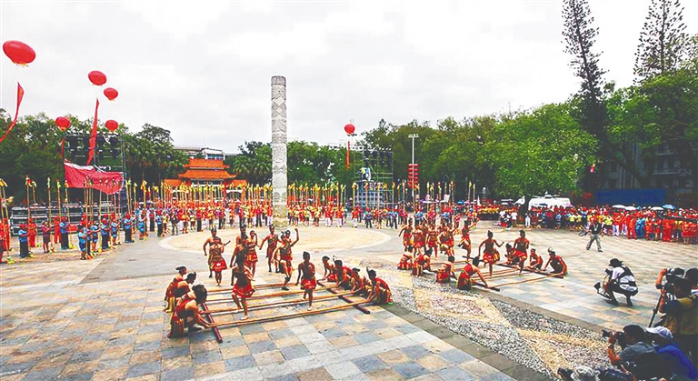 二是加快建设黎苗文化精神家园。坚决铸牢中华民族共同体意识,大力弘扬少数民族优秀文化,扎实推进“六个一批”工作,推动黎族苗族文化创造性转化和发展。“六个一批”指的是建设一批特色民族村寨、出版一批图书文献和文化研究、推进一批民族文化项目、打造一批民族文化产品、发展一批以黎药苗药为基础的南药康养项目、形成一批民族文化生态。
