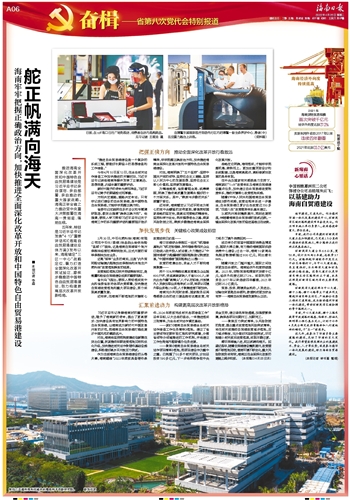 | 海南日报 奋楫——省第八次党代会特别报道 006 2022-04-261 2022年04月26日 星期二 |