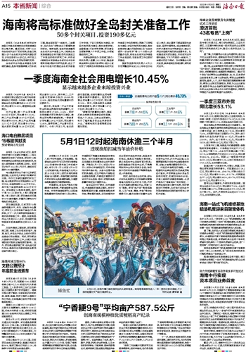 | 海南日报 本省新闻综合 015 2022-04-261 2022年04月26日 星期二 |
