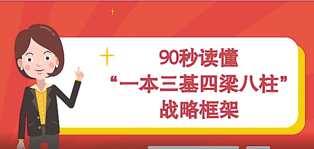 海南日报新媒体部策划推出MG动画《90秒读懂“一本三基四梁八柱”战略框架》,聚焦党代会报告中今后五年海南要全面落实的“一本三基四梁八柱”战略框架,用MG动画的形式,分解“1”“3”“4”“8”四个数字,呈现战略框架具体内容。
