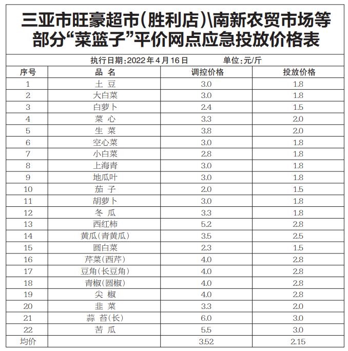 三亚市稳价办在一级批发市场和平价蔬菜调控中心等地设立价格监测点,对保基本蔬菜批发价格进行监测,每天凌晨1时通过微信平台发送当天“调控价”给“菜篮子”产销联盟所有平价网点,平价网点以不高于“调控价”进行销售。