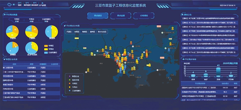如何保证平价网点按照政府“调控价”销售蔬菜?三亚市搭建“菜篮子”工程信息化监管平台,连接平价网点蔬菜销售结算系统,平价网点什么时间销售什么品种蔬菜、什么价格销售、销售多少都实时传到监管平台,政府根据销量给予补贴。
