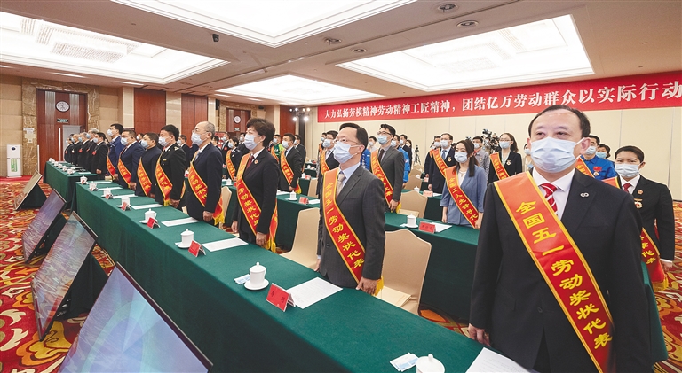 大会表彰2022年全国五一劳动奖和全国工人先锋号获得者。966人获得全国五一劳动奖章,其中产业工人占比超四成。200个集体获全国五一劳动奖状,956个集体获全国工人先锋号。表彰对象覆盖了19个国民经济行业大类,其中,“制造业”占到34.1%。今年还单列了35个奖章、3个先锋号名额,表彰全国职工职业技能大赛优胜者和国家重大工程项目的建设者。