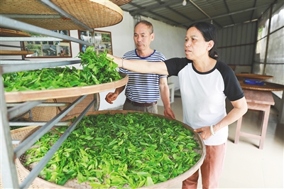 “水满茶经久耐泡、柔滑甘香,汤色纯净,口感好。”黄菊妹介绍,水满茶受市场欢迎,除了原料和产地之外,传统的手工制作技艺也是重要原因。