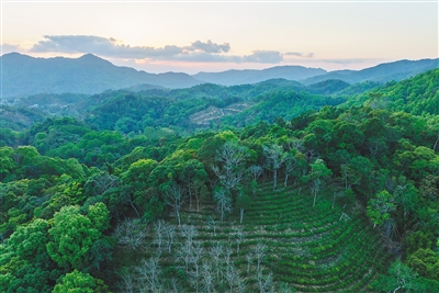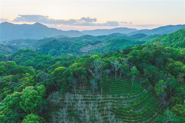 4月的五指山市水满乡毛纳村,春意盎然。山腰上的老茶树长出新叶,飘出阵阵清香。
