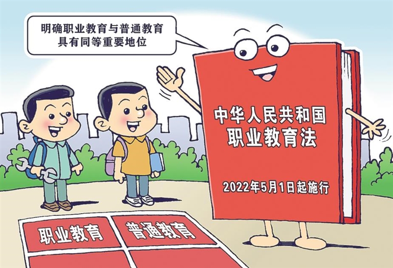 新修订的《中华人民共和国职业教育法》于2022年5月1日起施行,明确职业教育与普通教育具有同等重要地位。