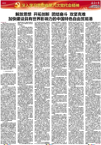 解放思想 开拓创新 团结奋斗 攻坚克难 加快建设具有世界影响力的中国特色自由贸易港