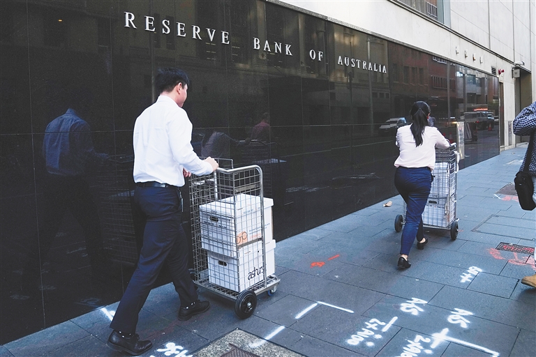 5月3日,人们从位于悉尼的澳大利亚储备银行前走过。