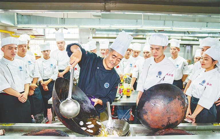 5月7日,海南职业技术学院的学生们在学习烹饪工艺与营养课程。“十四五”期间, 我省将落实海南自贸港、海南国际教育创新岛建设要求,构建适应海南产业发展的现代职业教育体系,培养适应海南自贸港建设需要的高素质技术技能人才。本报记者 袁琛 摄