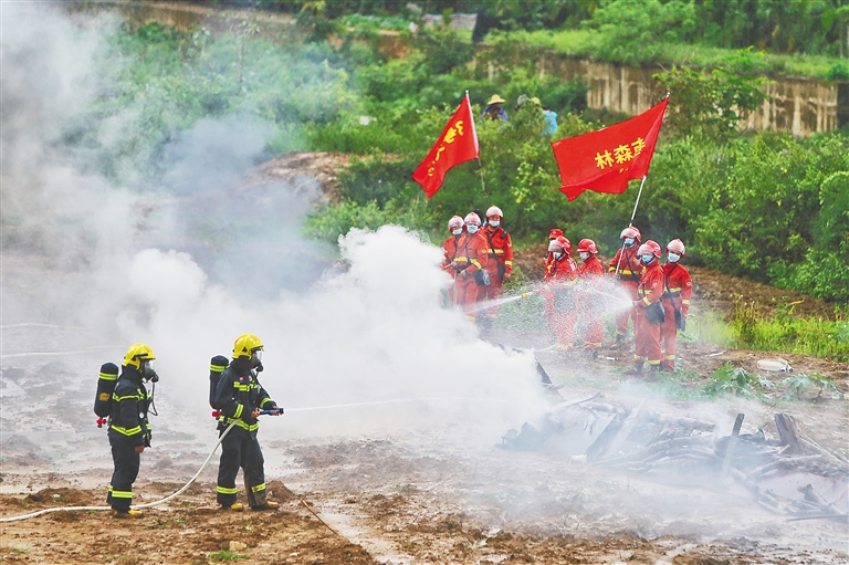 本报五指山5月7日电 (记者孙慧)5月7日下午,省应急管理厅和五指山市联合在五指山市畅好乡举行“守护雨林-2022”五指山森林火灾扑救应急演练。