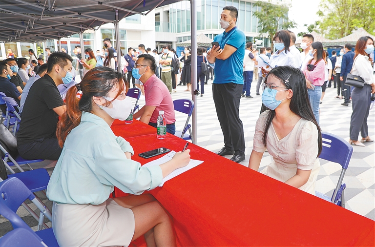 5月8日,“职在江东 共赴未来”海口江东新区2022年招聘会举行。此次专场招聘会采取线上线下同步招聘的方式进行,共收到投递简历2万余份。