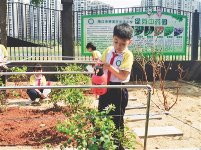 二是生产劳动特色化。学校充分利用校园资源,开设蔬菜园、中药园和百果园三个劳动基地,让学生在劳动体验的过程中感受劳动的艰辛,体会收获的快乐,学会珍惜劳动的成果。学校中药园劳动基地由海南医学院药学院援建,将打造成集中药知识普及、中药种植、药膳制作于一体的综合性学习基地,让学生们走近悠久的传统中医药文化,培养他们对中医药学习的兴趣。
