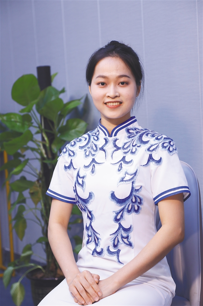 初见叶科彩时,她正在海南医学院第一附属医院里接受礼仪和走秀培训。身着旗袍、扎着高马尾的她,以端庄的仪态一步步走来,脸上始终带着暖暖的微笑。