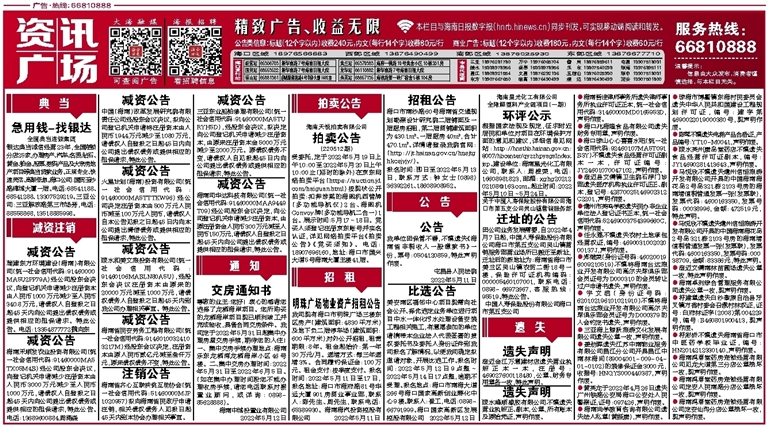 我司现有海口市明珠广场三楼东区房产(建筑面积:4830平方米)及地下负二层停车场(建筑面积:600平方米)对外公开招租,租赁期限:8年。租金起始价:第一年30万元/月。递增方式:每三年递增3%。合同履约保证金:100万元。租金支付:按季度支付。报名时间:2022年5月11日至17日,报名地址:海口市海府路81号华运大厦901房商业事业部,联系人:陈先生、周先生,联系电话:65389930。