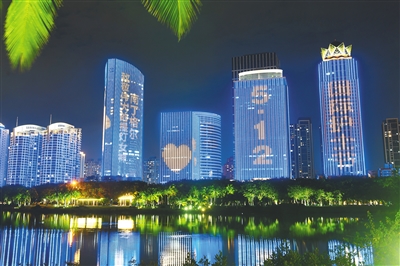 5月12日是国际护士节,海口湾建筑群亮灯致敬“白衣天使”。