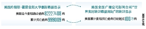 美国全国广播公司新闻台和“世界实时统计数据网站”的统计显示,美国累计新冠死亡病例数已超过100万例。