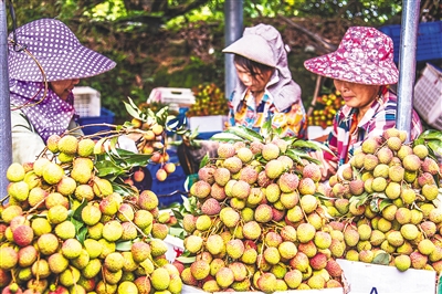 据悉,今年该基地荔枝迎来大丰收,预计可收获荔枝约3万斤。产品除了旺销岛内外,还留下部分供市民游客采摘。