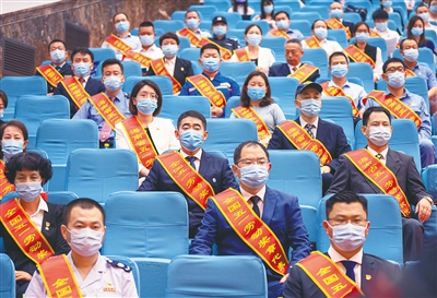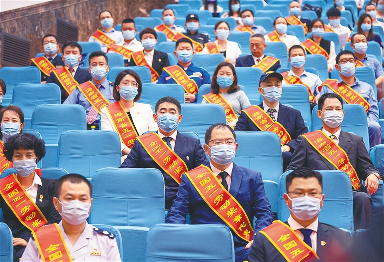 明亮的灯光下,一块块奖章熠熠闪光。在省委、省政府的坚强领导下,全省广大劳动者以高度的责任感和创造力,以忘我的拼搏精神,在平凡岗位上做出了不平凡的业绩,为海南自贸港建设作出了不可磨灭的贡献,谱写了一曲“劳动最光荣、劳动最崇高、劳动最伟大、劳动最美丽”的新时代赞歌。