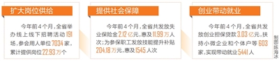 省人力资源开发局(省就业局)有关负责人表示,今年前4个月城镇新增就业数据逆势增长,关键在于我省始终坚持把就业放在民生工作的突出位置。今后将继续落实减负稳岗扩就业政策,大力开展就业质量提升行动,千方百计服务好市场主体,提供更多的就业机会、更优的就业岗位。
