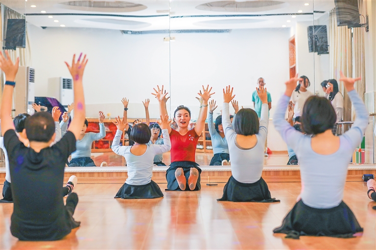 今年春季新学期以来,共青团屯昌县委员会积极联系爱心组织,邀请校外的舞蹈老师志愿为屯昌县特殊教育学校教授舞蹈。图为5月12日,校外的舞蹈老师为屯昌县特殊教育学校学生上舞蹈课。