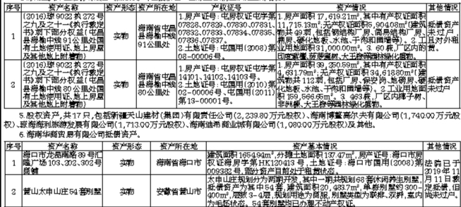 4.海南圣大木业股份有限公司抵债资产,包括新老厂区的土地、房屋及地上附着物。