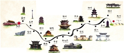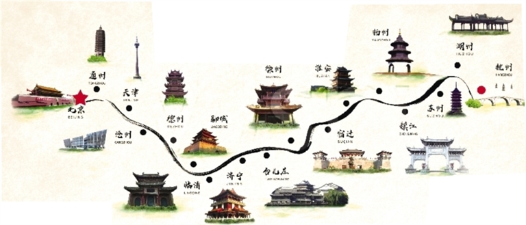 京杭大运河南起余杭(今杭州),北至涿郡(今河北涿州市及北京部分区域),途经浙江、江苏、山东、河北四省及天津、北京两市,全程1794公里。