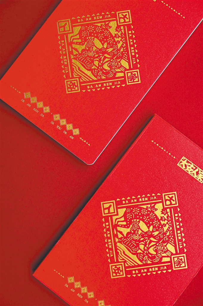 据了解,这是一组名为《大安人家》的大安剪纸文创作品,大安剪纸不仅被搬上帆布手提袋,还被搬上精美的笔记本、明信片,这组文创作品,还附有一份大安剪纸DIY材料。