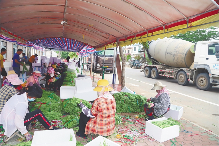瓜菜不知拉到哪里卖,农民只能“守株待兔”,难以卖上好价钱;商贩无固定经营场所,只能“打游击”,难以保障收购量……5月中旬,五指山市番阳镇的2500多亩豇豆陆续进入收获期,开始大量上市,但当地群众近日向海南日报记者反映,他们种植的豇豆等农产品大多通过“马路市场”交易,不仅给买卖双方造成交易上的困难,还带来了阻碍交通、影响卫生、监管困难等问题。类似情况在乐东黎族自治县佛罗镇等我省部分瓜菜产销大镇均存在。