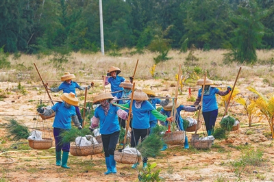 29年,她们用360余万株木麻黄,筑起了1.88万亩海防林。2010年,昌江完成海防林建设任务时,全县海防林面积超过5.2万亩,由“植树娘子军”完成的面积占比超过36%。